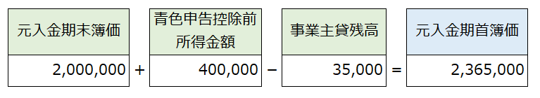 12月末残高 事業主貸 35,000円,元入金残高 2,000,000円、青色申告特別控除前の所得金額 400,000円の場合