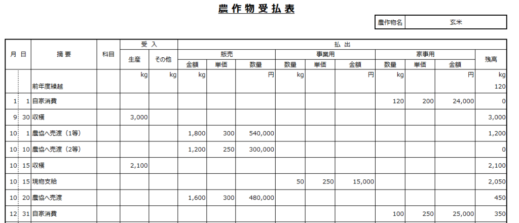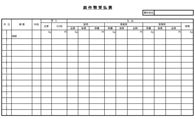 棚卸をするには、農作物の収穫による受入れ、販売や家事消費の払出しを記帳しておく「農産物受払表」が必要です。