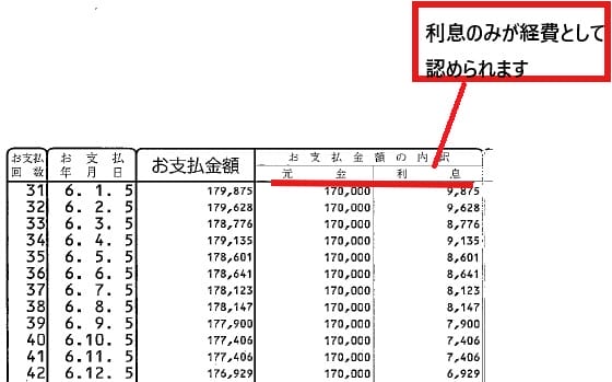 借り入れた元金は経費にはなりませんが、利息分は経費となります。