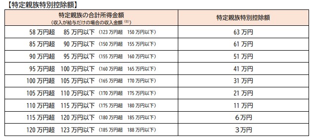 さらに、以前は所得を超えたら扶養控除が0円でしたが給与収入が188万まで、特別控除を受けることができます。(収入に応じて控除額が段階的に減ります)